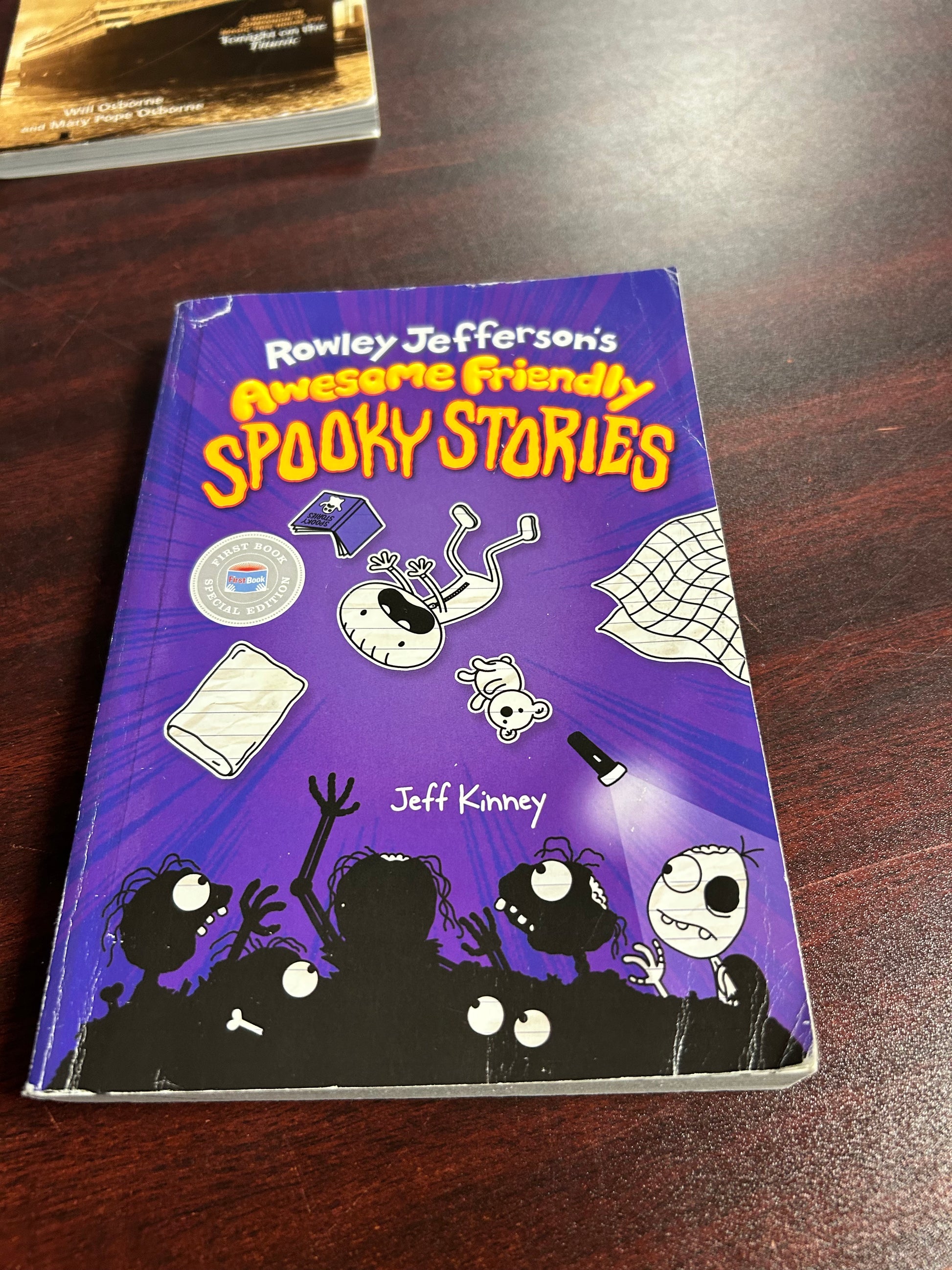Scare yourself silly with Rowley Jefferson’s Awesome Friendly Spooky Stories by Jeff Kinney, the #1 international bestselling author of Diary of a Wimpy Kid! Grab a flashlight, crawl under the covers, and dive into the twisted, unexpectedly hilarious world of Rowley Jefferson’s imagination. You’ll meet zombies, vampires, ghosts, and much more in these comically terrifying tales.Rowley’s spooky stories might leave you laughing, but beware—you could end up sleeping with the lights on!And don’t miss Rowley Jefferson’s first two awesome friendly books, the instant #1 bestsellers Diary of an Awesome Friendly Rowley Jefferson’s Journal and Rowley Jefferson’s Awesome Friendly Adventure!
